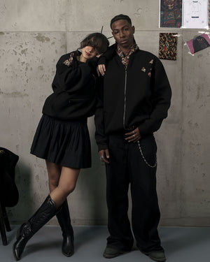 Crafted from premium cotton in a delicate sakura pink hue, this cropped silhouette features contrast-printed sleeve cuffs, showcasing intricate Edo-era patterns reimagined for the modern wearer.